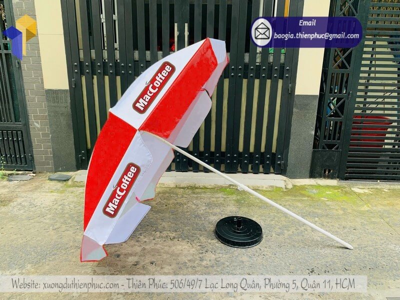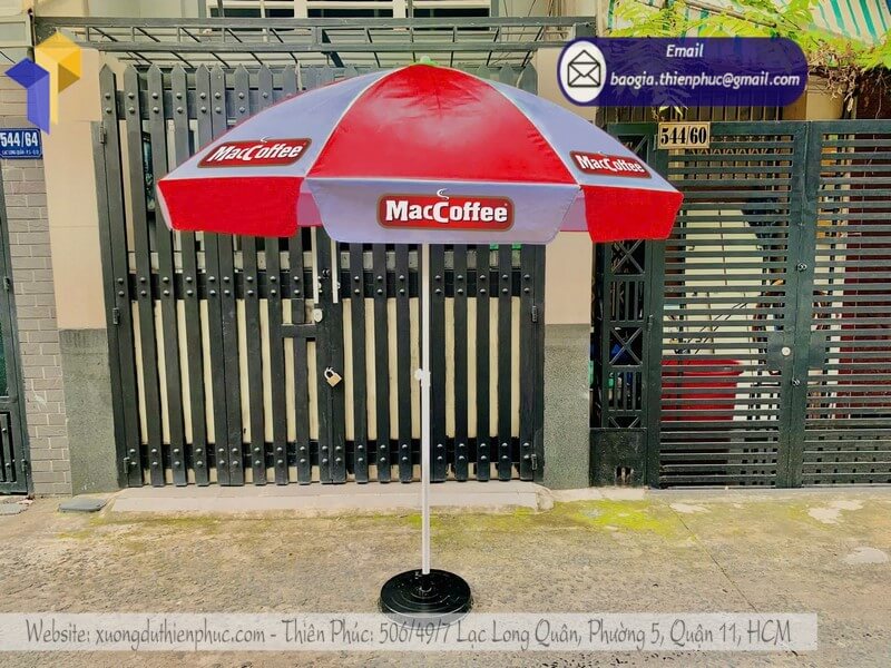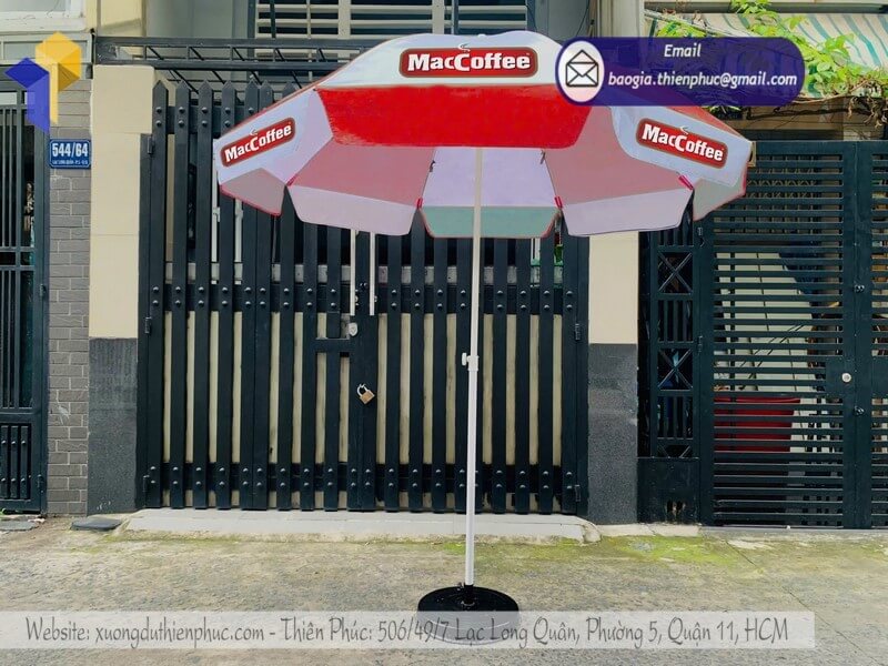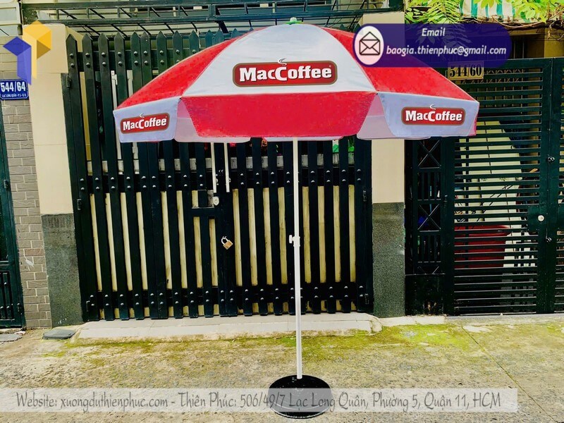Tên sản phẩm: Báo giá dù che quảng cáo ngoài trời in logo thương hiệu với nhãn hiệu - thương hiệu MACCOFFEE