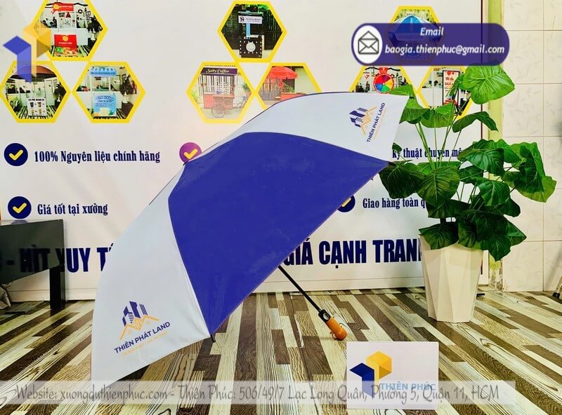 Tên sản phẩm: Báo giá in logo dù che cầm tay quảng cáo cho nhãn hiệu THIÊN PHÁT ILAND