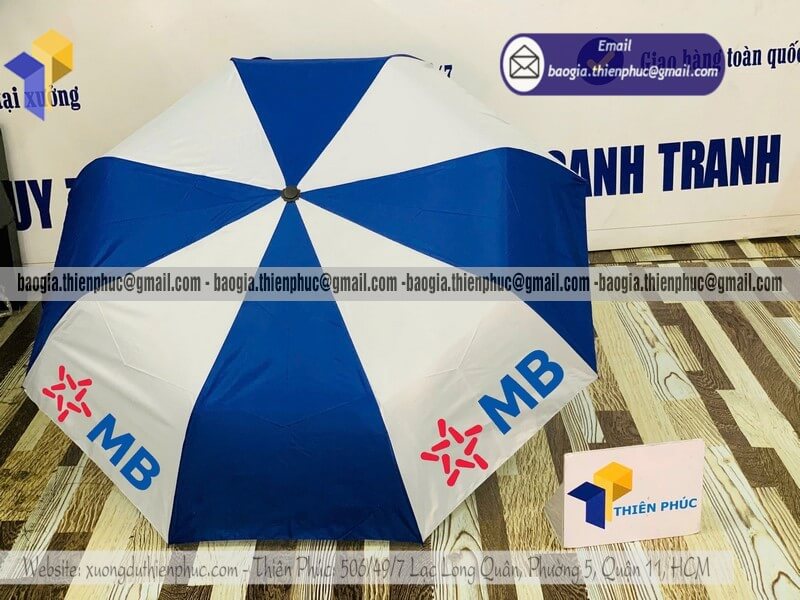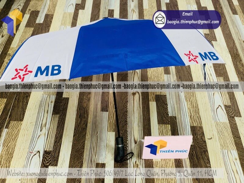 Tên sản phẩm: Đặt in dù che cầm tay theo yêu cầu thương hiệu có logo Ngân Hàng MB