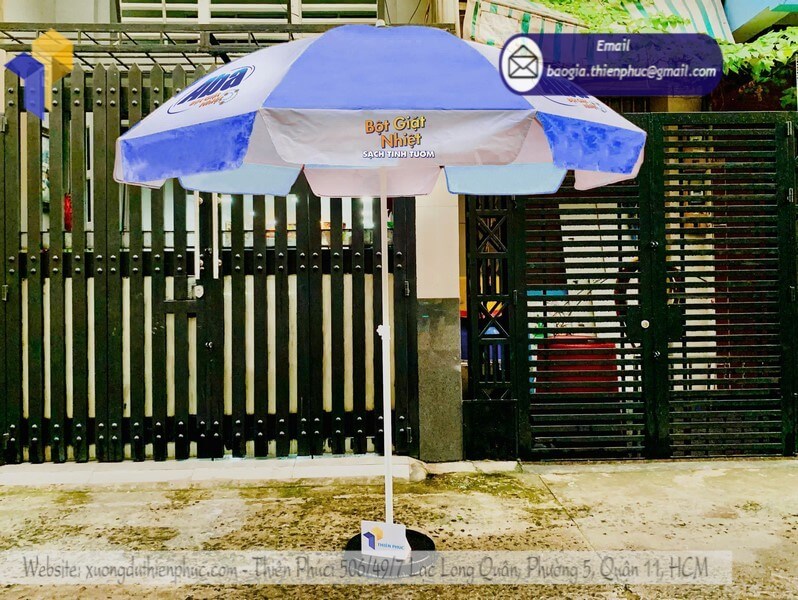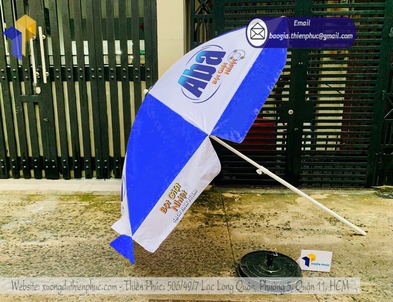 Đặt in logo dù che quảng cáo ngoài trời chất lượng cao - Xưởng sản xuất Thiên Phúc chuyên nhận đặt in mẫu ô dù quảng cáo ngoài trời với giá dao động chỉ với 400.000đ/cây dù quảng cáo. Nhận in logo số lượng lớn. Hỗ trợ xuất hóa đơn VAT cho doanh nghiệp. Với trên 10 năm kinh nghiệm, Thiên Phúc cam kết chất lượng mẫu mã.
