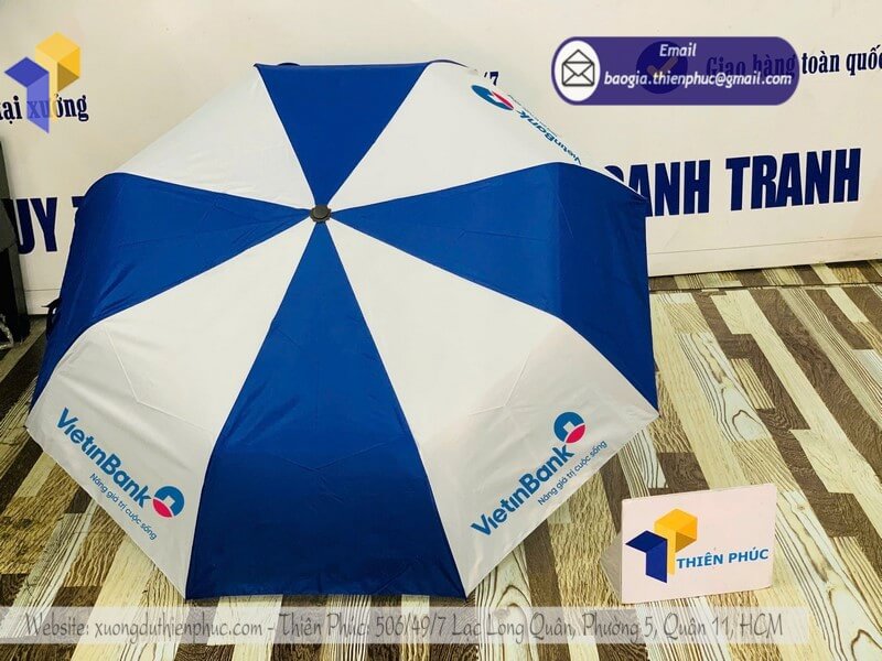 Tên sản phẩm: Đặt làm mẫu ô dù cầm tay ngoài trời in logo giá sỉ với logo nhãn hàng Ngân Hàng VietinBank