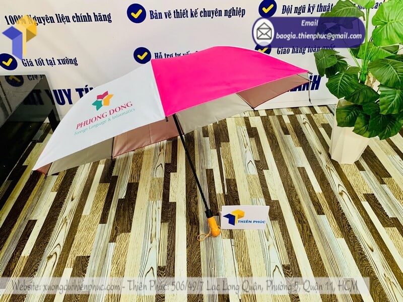 Tên sản phẩm: Đặt mua mẫu ô dù cầm tay in logo giá sỉ với nhãn hàng nhãn hiệu PHUONG DONG