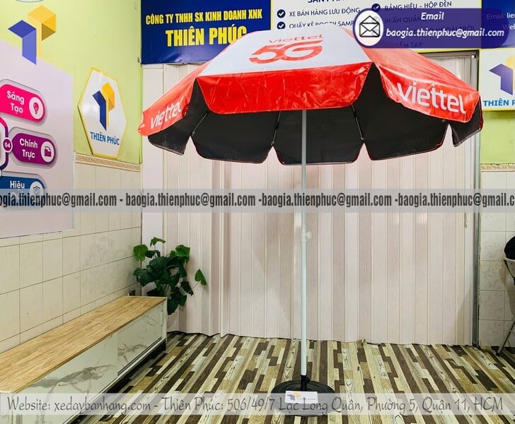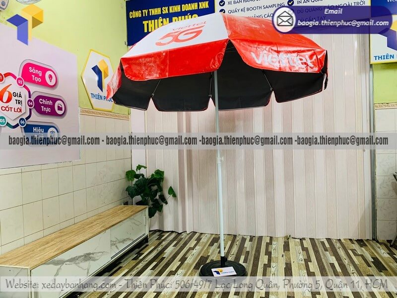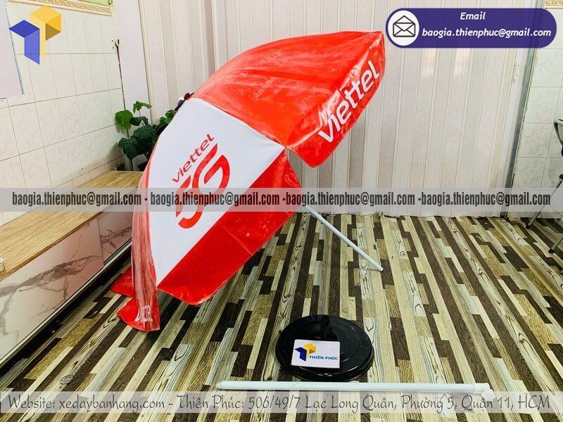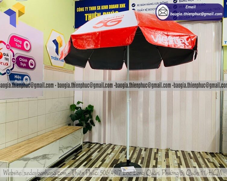 Tên sản phẩm: Mẫu dù tròn bạt quảng cáo in thương hiệu bền màu với nhãn hàng nổi tiếng VIETTEL 5G