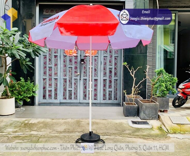 Mẫu ô dù quảng cáo ngoài trời cỡ lớn in logo theo yêu cầu - Xưởng sản xuất Thiên Phúc chuyên cung cấp và thiết kế nhiều mẫu dù quảng cáo ngoài trời miễn phí, in theo yêu cầu khách hàng, nhận đặt hàng số lượng lớn. Giá rẻ nhất chỉ dao động từ 400.000đ/cây trở lên. Giao hàng trên toàn quốc.