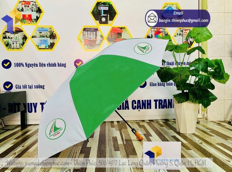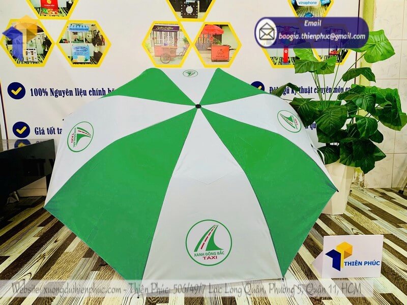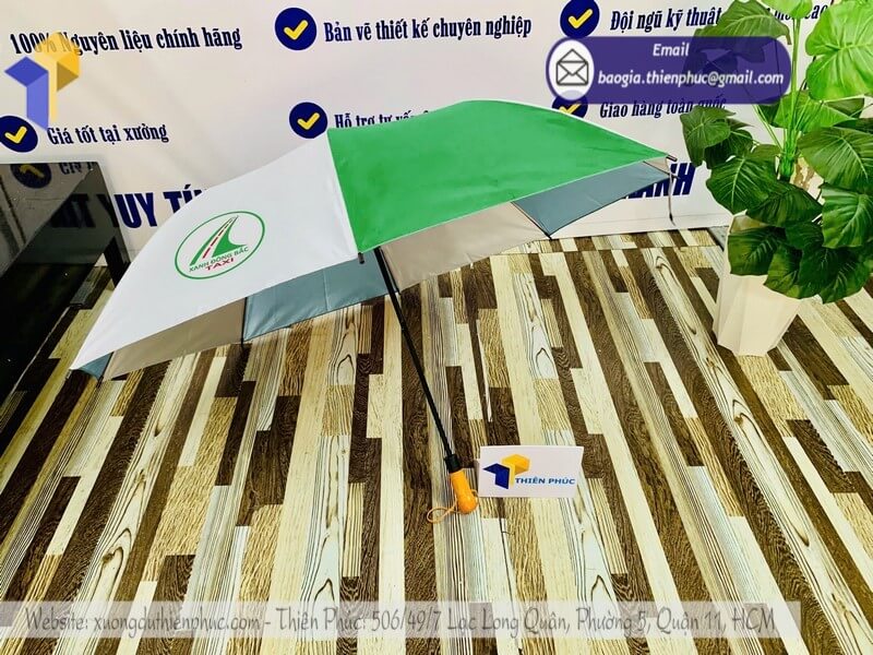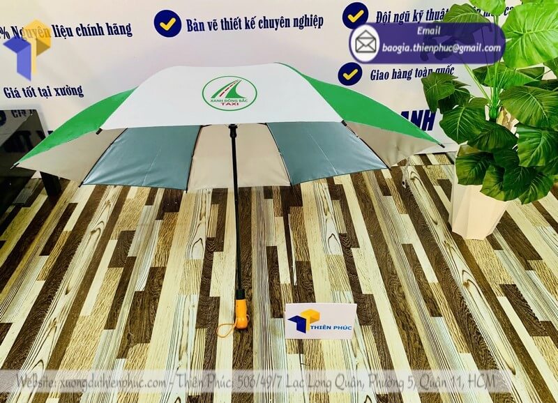 Tên Sản Phẩm: ô dù quảng cáo cầm tay bằng gỗ gắn logo doanh nghiệp XANH ĐÔNG BẮC TAXI