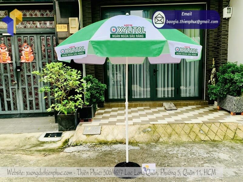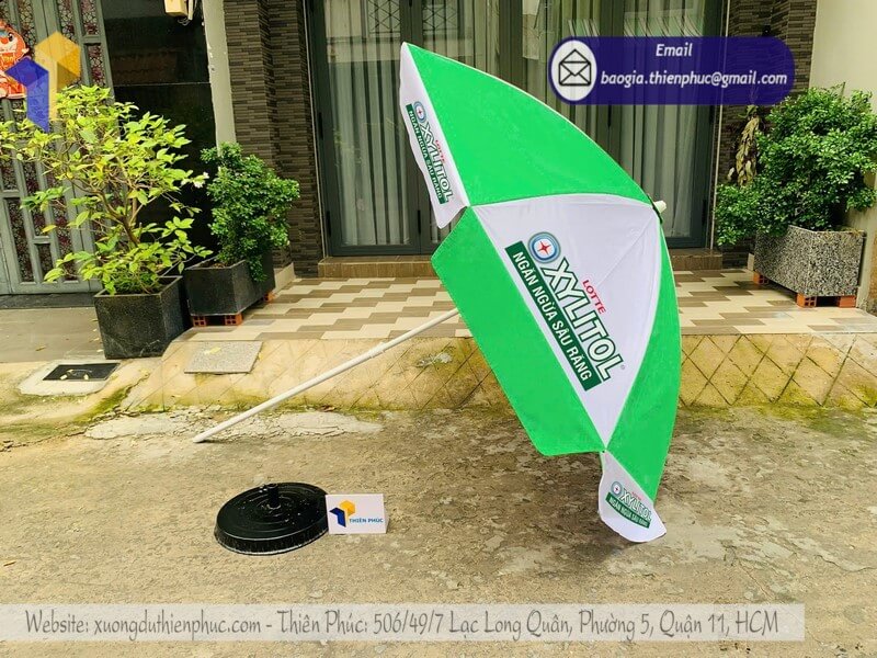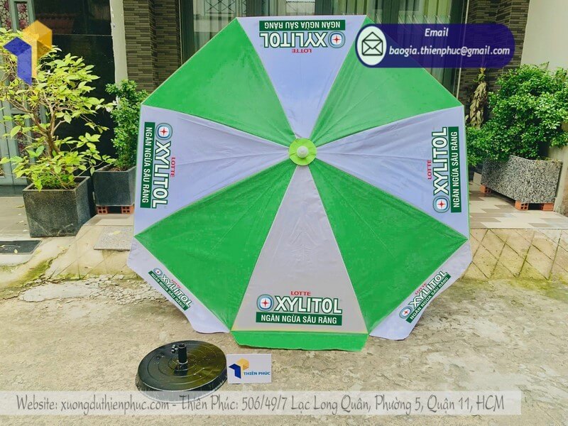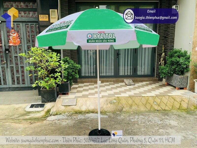 Tên sản phẩm: Xưởng in logo ô dù quảng cáo theo yêu cầu lấy liền với nhãn hàng thương hiệu XYLITOL