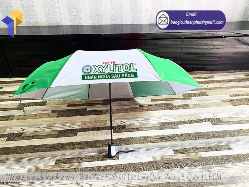 Tên sản phẩm: Xưởng nhận in logo ô dù cầm tay quảng cáo giá sỉ với nhãn hàng XYLITON - LOTTTE