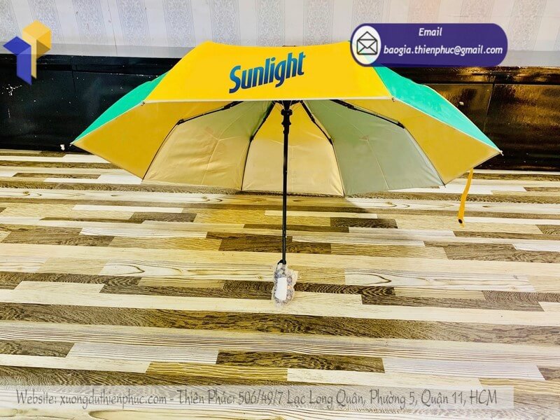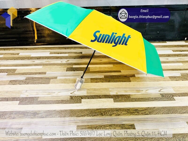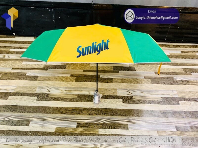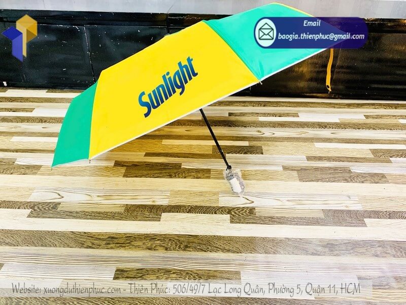 Tên sản phẩm: Xưởng sản xuất dù cầm tay in logo thương hiệu giá sỉ với nhãn hàng Nước Rửa Chén SUNLIGHT