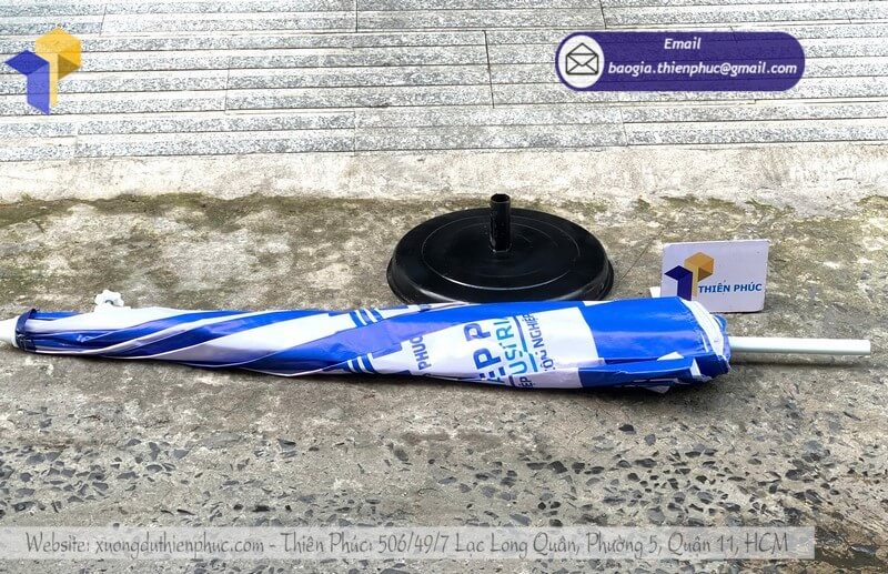 - Kích thước và kiểu dáng ô dù (Ø2m, Ø3m, Ø4m hoặc các mẫu đặc biệt).